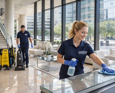 AM2PM Facility Services is a professional janitorial company specializing in comprehensive, turnkey cleaning solutions for commercial clients. With over 20 years of industry experience, we proudly serve a diverse range of industries, delivering dependable, high-quality results.